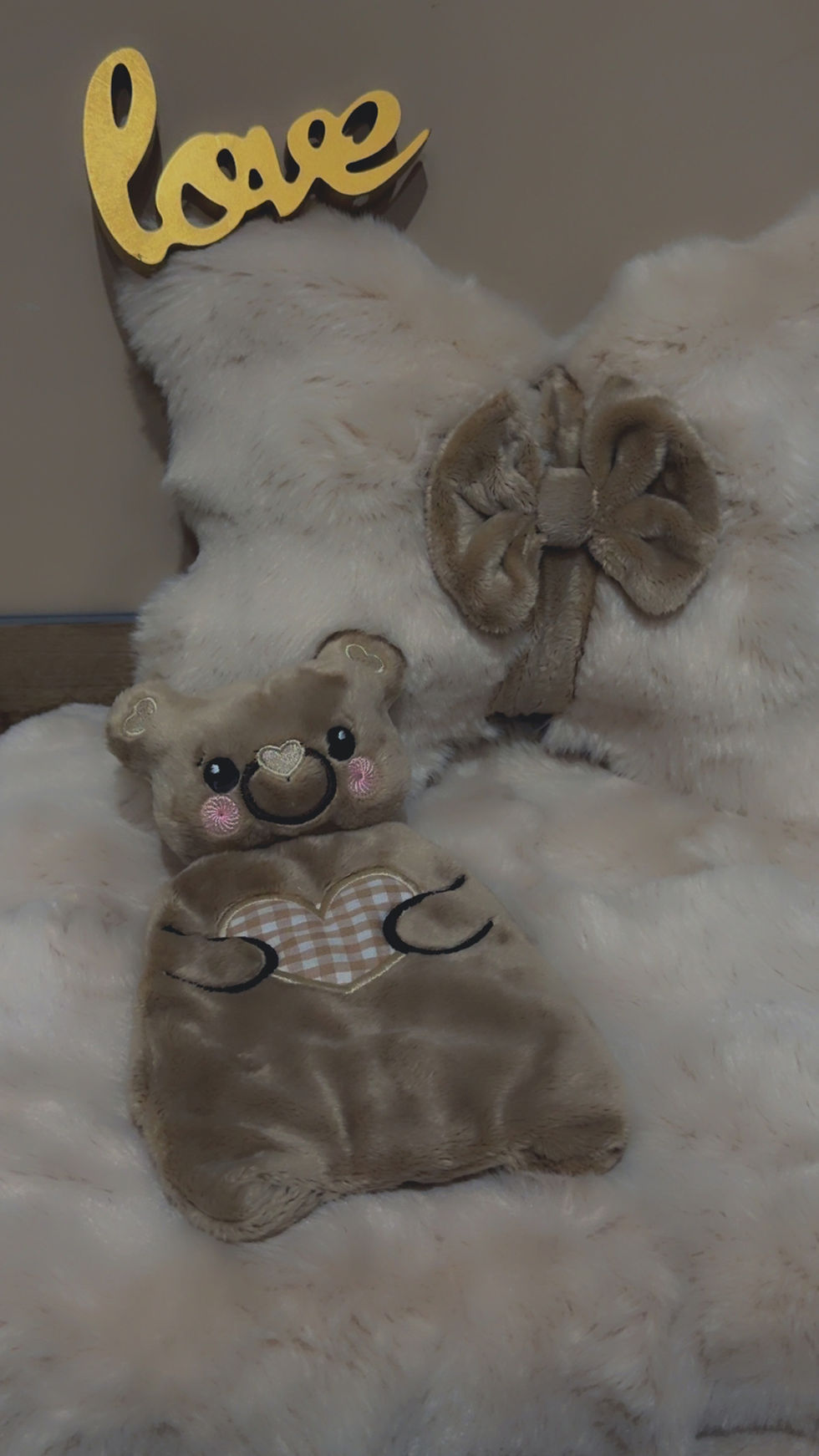 Doudou plat Saint Valentin taupe